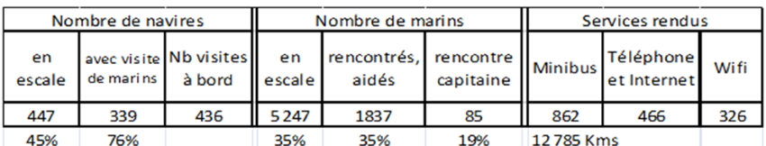Bilan des aides et services réalisés par les bénévoles pour les marins